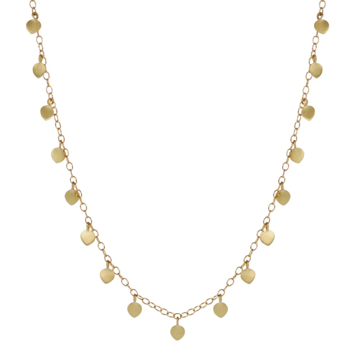 The lotus flower is the heart’s inner shrine. It is the symbol of creation and manifestation in the Hindu religion. Inspired by the power and beauty of the lotus, recycled 18K gold lotus petals hang from 18K gold chain. This elegant and classic necklace shimmers beautifully at night, but is delicate enough to wear during the day. This chain is available in 16″ or 18″ with a hook and eye closure.