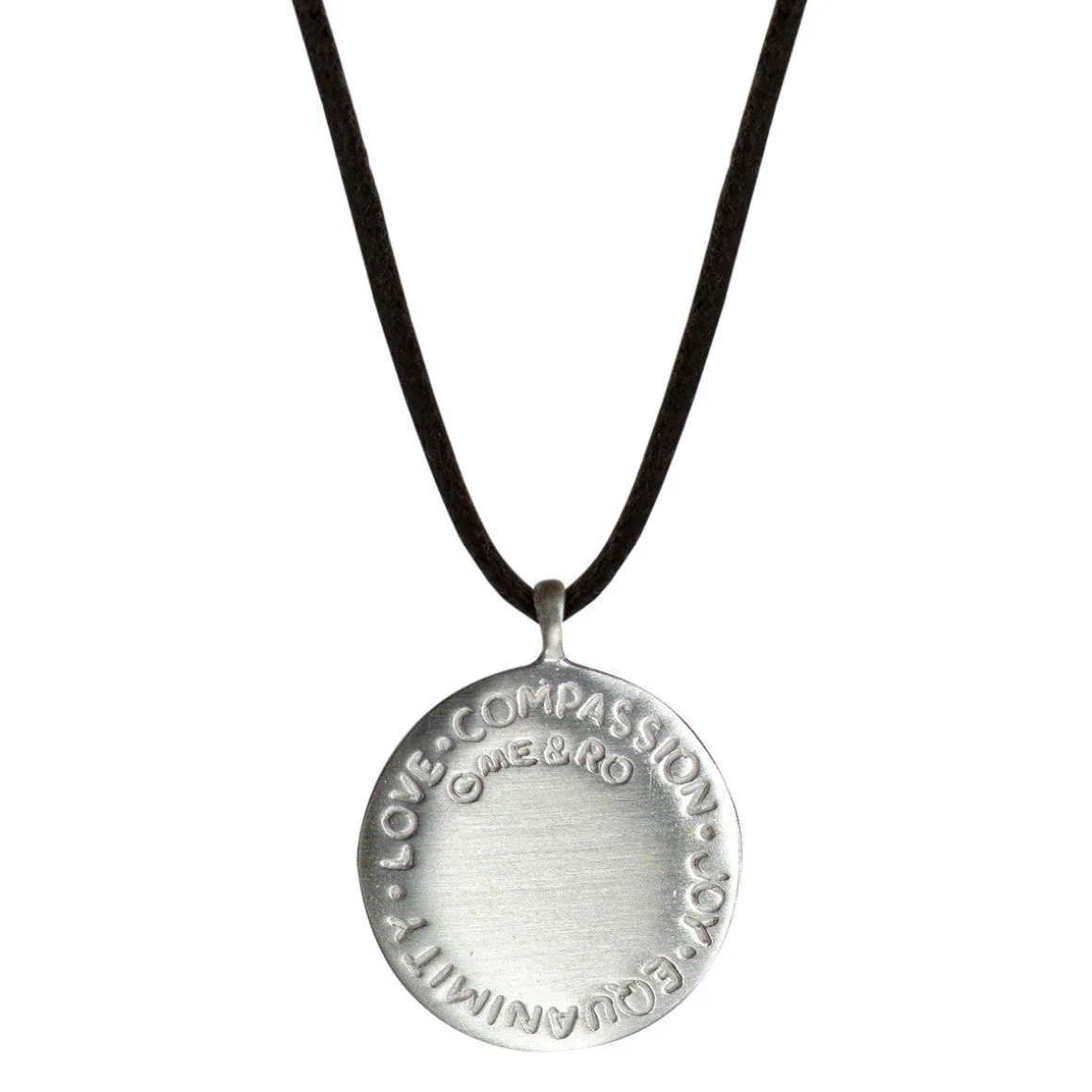 The Four Immeasurables, Love (Maitri), Compassion (Karuna), Joy (Mudita) and Equanimity (Upeksa), is a Tibetan vow that encourages us to focus our attention on helping others. The vow is engraved in Tibetan on this recycled sterling silver disc, measuring approximately 3/4″ in diameter. The pendant hangs from a 22″ black cotton cord with a sterling silver button closure.