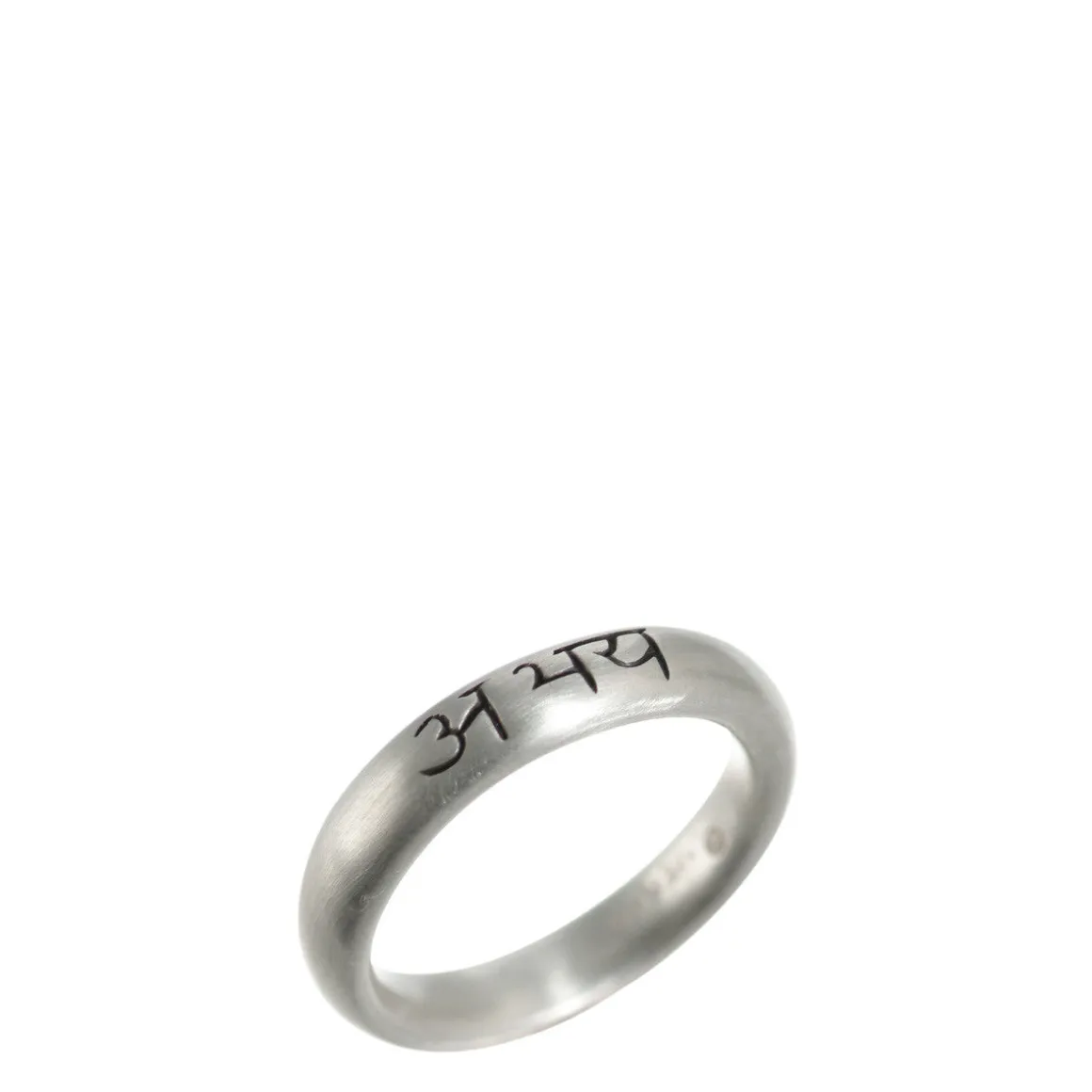 This recycled sterling silver round band is engraved on the outside in Sanskrit with ‘Abhaya,’ and on the inside with the English translation: ‘Fearlessness’. Available in sizes 9 – 11.
