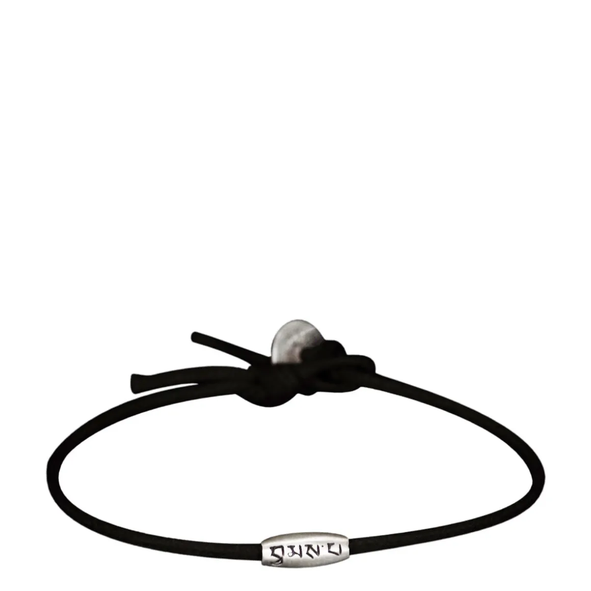 Love is one of the Four Immeasurable,’ the Tibetan vow one makes to help others, expressing a sincere wish for the welfare and genuine happiness of all living beings without exception. This tiny recycled sterling silver barrel shaped bead, which is 1/2″ in length, is engraved with ‘Maitri’ or ‘Love’ in Tibetan. The bracelet comes on 8″ black cotton cord with a sterling silver button closure.
