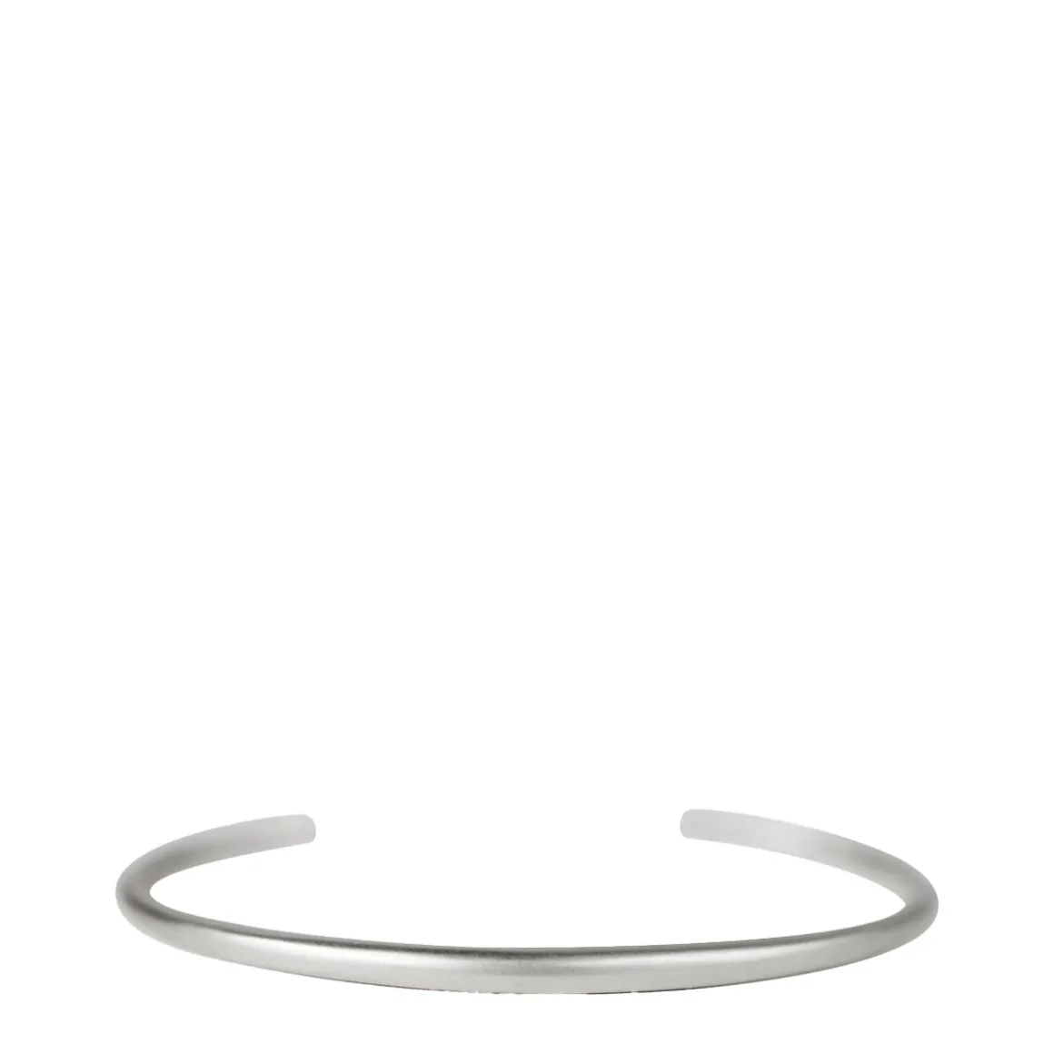 The Tibetan Bar Collection was inspired by an antiqueTibetan necklace and grew to explore lush lines and curvature. This silver cuff bracelet has a modern aesthetic with elegant graduating lines. It hangs heavy at the center while floating lightly away at the ends. This thin cuff bracelet made of recycled sterling silver measures about3.8mm at its widest point and 2.5mm at its finest. This classic style averts classification, becoming something between an ellipse and a crescent, spurring our imagination.