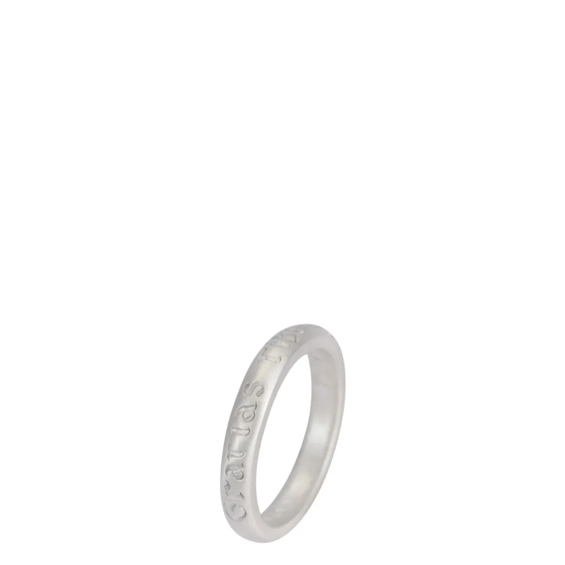This simple recycledsterling silverround band is engraved on the outside in Latin withGratias tibi ago’and on the inside with the English translation ‘to you, I lend my gratitude’. With an eternal sentiment, these rings are an offering to those we treasure, those who complete us. The band measures approximately 4 mm in width.