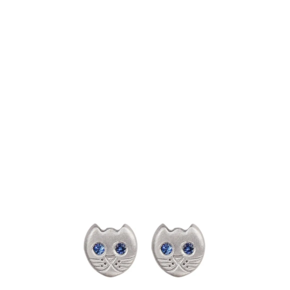 Known for their independence and patience, these whimsical kitten studs are purrrrfect for everyday wear. These studs are engraved with fine detailed whiskers and set with sapphire eyes measuring approximately 6mm at the widest point and approximately 6.2mm in length.