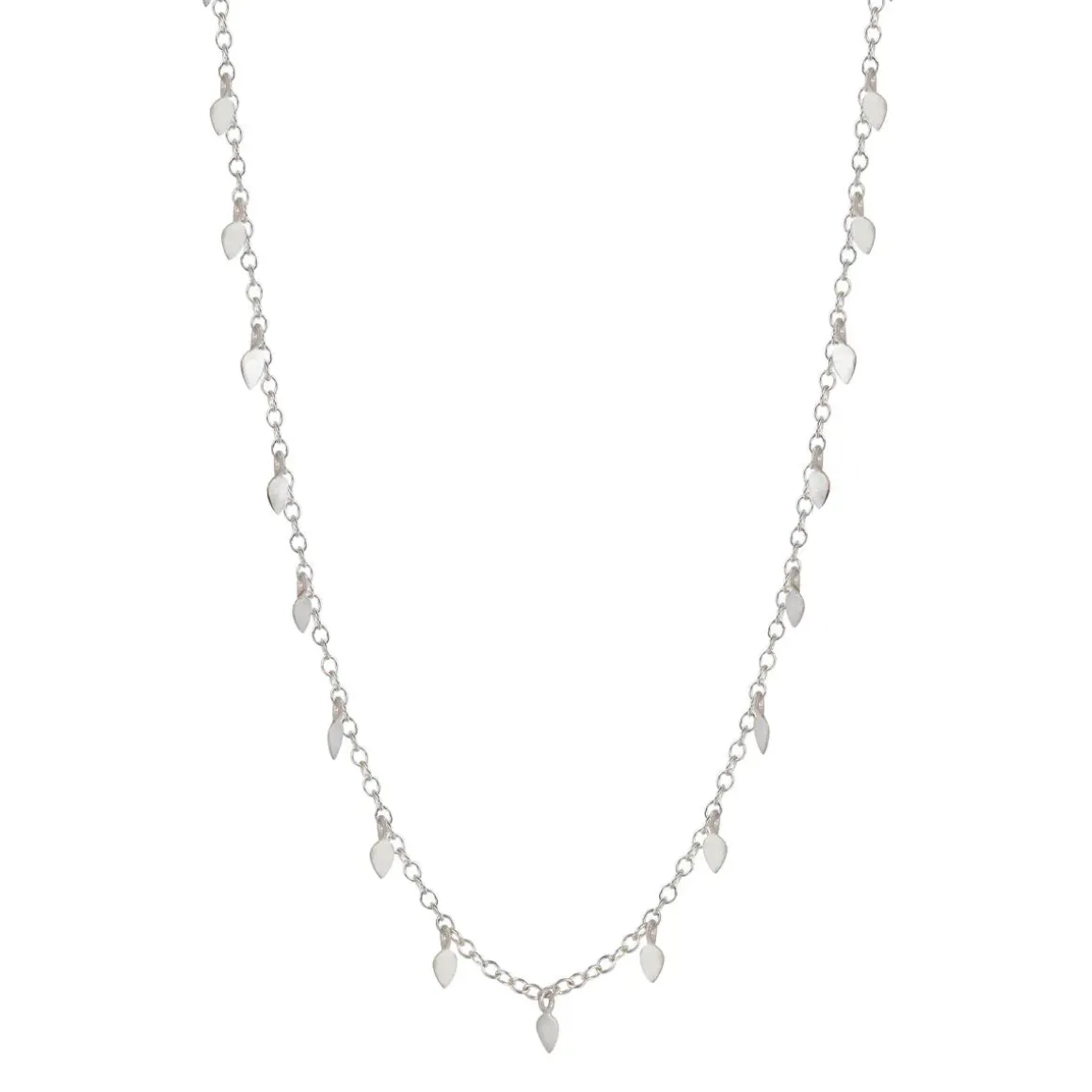 This beautiful recycled sterling silver chain features tiny petals that catch and reflect the light. Great for everyday wear, this limited edition necklace is available in 16″ and 18″ with a small round lobsterclosure, petals are spaced approximately 1/2” apart.