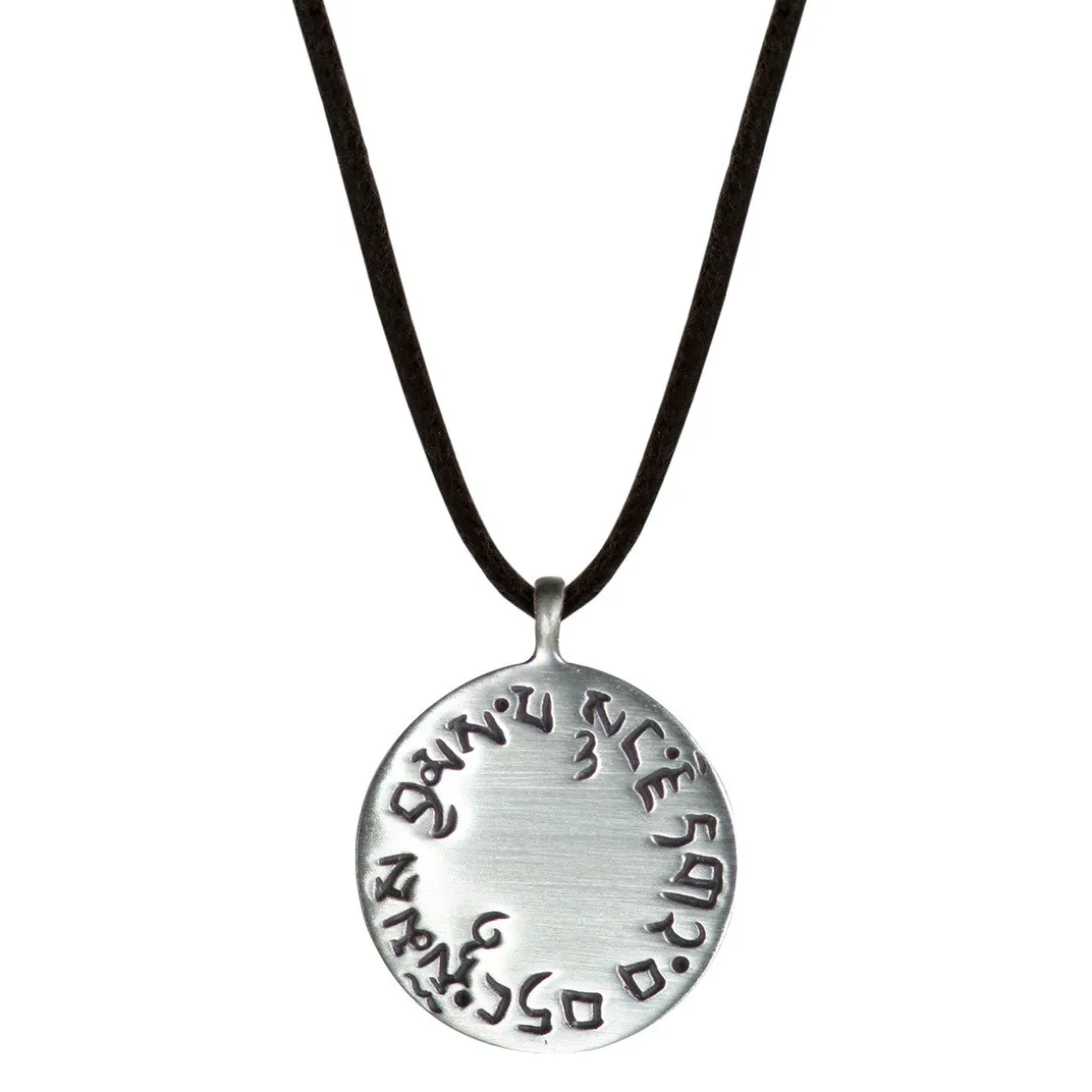 The Four Immeasurables, Love (Maitri), Compassion (Karuna), Joy (Mudita) and Equanimity (Upeksa), is a Tibetan vow that encourages us to focus our attention on helping others. The vow is engraved in Tibetan on this recycled sterling silver disc, measuring approximately 3/4″ in diameter. The pendant hangs from a 22″ black cotton cord with a sterling silver button closure.