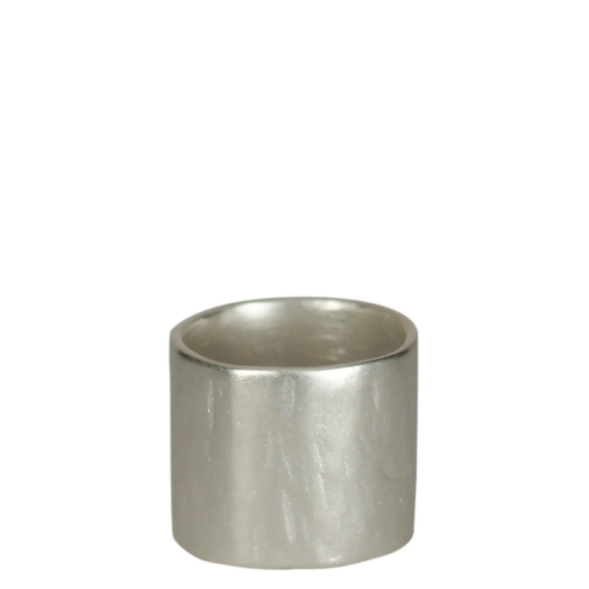 This wide hammered recycled sterling silver ring is soft and reflective with a primitive feeling and measures about 5/8″ wide. Available in sizes 8.5-13.5.