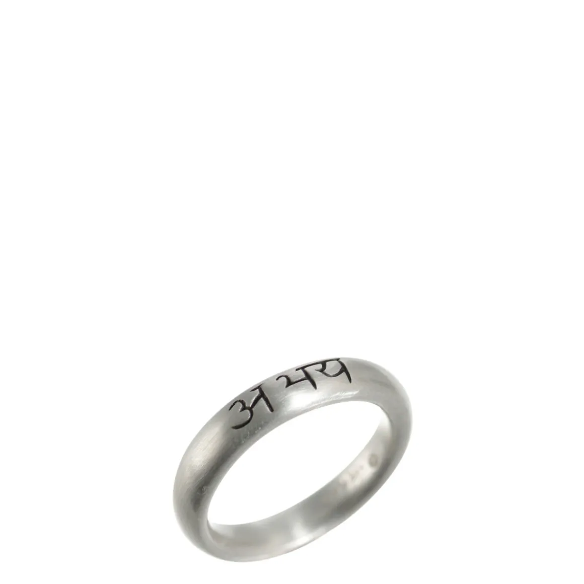 This recycled sterling silver round band is engraved on the outside in Sanskrit with ‘Abhaya,’ and on the inside with the English translation: ‘Fearlessness’. Available in sizes 5 – 8.