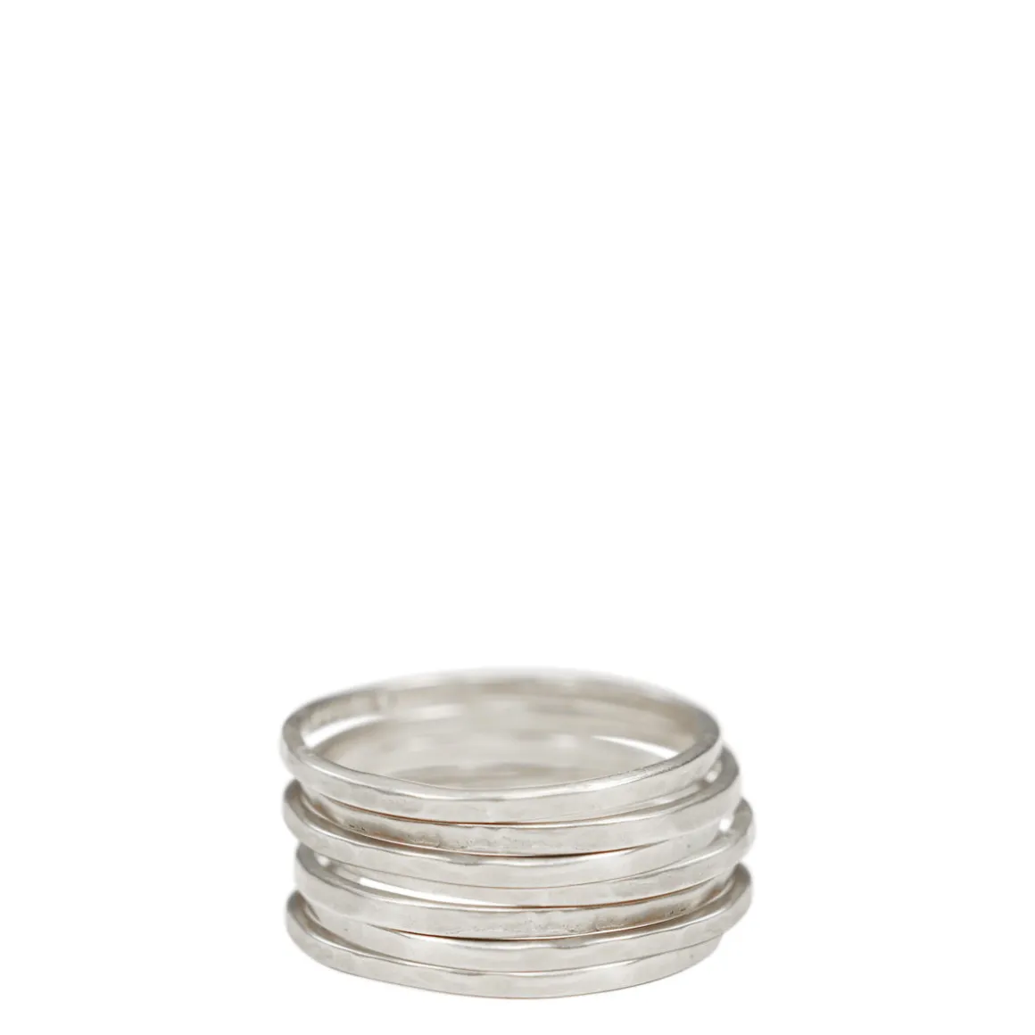These sexy seven recycled sterling silver hammered rings are a Me&Ro classic and great for stacking other rings too! The rings have a hammered texture and measure about 1/2 an inch when stacked together. Available in sizes 5-9.