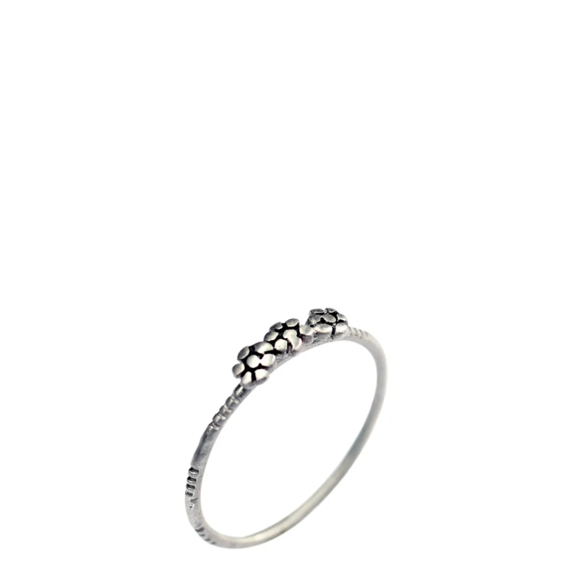 This delicate ring has three tiny flowers, sitting side by side. It is simply beautiful by itself or stacked with the Moroccan rings. Available in sizes 5 – 8.